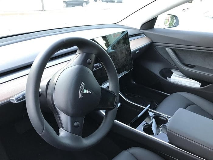 Además, todo es de buena calidad, aunque Audi y BMW siguen teniendo ventaja. Build quality is improved over the Model S and X. And the touchscreen that controls nearly everything is just And once you know where to find it, it's not an issue to have it located up there above the rear-view mirror, between the interior lights.